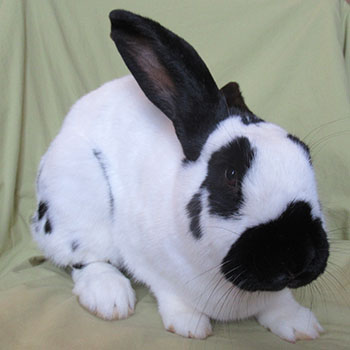 Merkmale: Riesenmix, Stehohr, Scheckin, weiß-schwarz