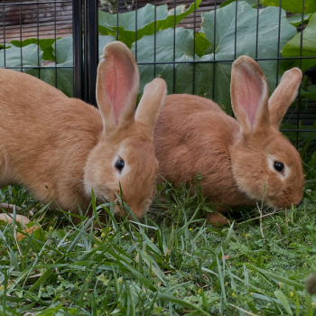 Ich heiße jetzt Toffy und durfte gemeinsam mit meinem Bruder Marbo, der jetzt Rambo heißt, in unser erstes eigenes Zuhause ziehen. Für uns beide wurde extra ein ganz neues Gehege gebaut - und ich sag euch: Das kann sich wirklich sehen lassen! Die Menschen haben sich vorher richtig gut informiert und an alles gedacht. Wir haben viel Platz und genug Möglichkeiten zum Hoppeln, Verstecken und Entspannen. Ich fühle mich hier richtig wohl. Rambo und ich sehen uns zum Verwechseln ähnlich, aber wenn man uns ein bisschen kennt, kann man uns gut auseinanderhalten. Uns geht es richtig gut hier - und ich glaube, das sieht man auch auf den Fotos! (Juni 2025)
