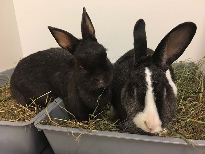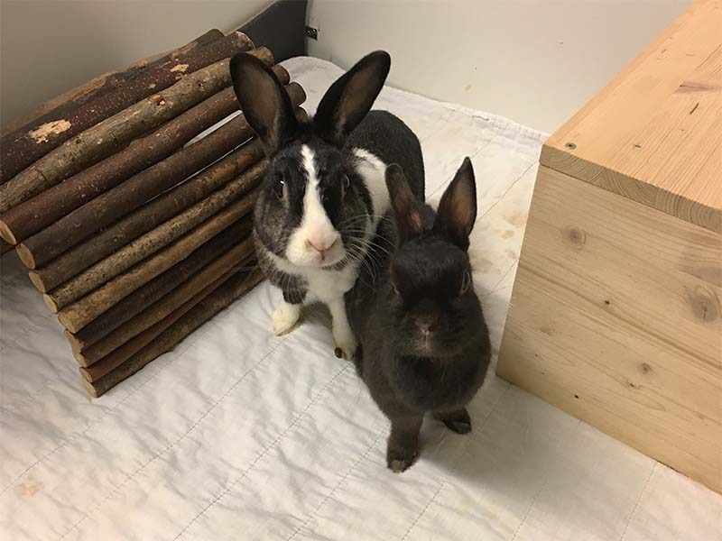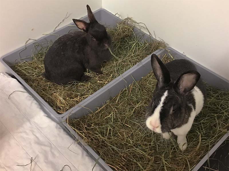 Nach einiger Zeit beim Verein wurde nochmals ein Röntgen gemacht, um meinen Gesundheitszustand zu überprüfen. Meine Blase sieht wieder recht gut aus, da hat die gesunde Ernährung bei der Kaninchen-Helpline super angeschlagen, jedoch sieht es mit meinem Beinchen nach wie vor nicht gut aus. Durch die alten Frakturen, die mir zugefügt wurden, sind die Gliedmaßen recht steif und laut Röntgenbild auch schon relativ porös und arthritisch. Hier muss in Zukunft eher noch mit einer Verschlechterung gerechnet werden. Auch mein Magen-/Darmtrakt weist eine relativ langsame Motorik auf, was regelmäßig zu einigen Luftansammlungen (Blähungen) führt. Das schlimmste (vor allem für andere) ist jedoch, dass ich extrem stubenunrein bin. Ich mache hin wo ich sitze, weil ich auch bedingt durch meine Brüche zu einer Überlaufblase neige. Hier hab ich ein bisschen ein schlechtes Gewissen, da meine Pflegemama sich neben eh schon einigen anderen gehandicapten und pflegeintensiven Hasis nun auch noch mit mir abrackern muss. Dennoch höre ich nie ein böses Wort, mein Gehege wird täglich gesaugt, geputzt und alle Decken gewaschen und auch wenn ich untenrum mal dreckig bin, werde ich liebevoll und sanft gereinigt. In der Zwischenzeit kam Bony zum Verein und nachdem für uns beide eine Vermittlung wohl ausgeschlossen werden kann, wurden wir einander vorgestellt. Und es klappte super, inzwischen sind wir zwei dicke Freunde und tapsen gemeinsam durch ein hoffentlich noch langes und glückliches Leben. (Juni 2017)