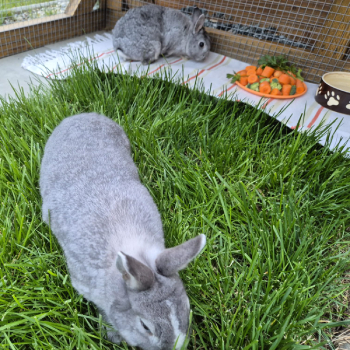 Ich stamme von einem großen Nofall in Niederösterreich. Ende April 2022 bat eine Familie um Hilfe, deren Kaninchenhaltung massiv aus dem Ruder gelaufen ist. In Zusammenarbeit mit einigen lieben Tierschutzvereinen und fleißigen Helferlein ist es uns gelungen, insgesamt 65 Kaninchen zu sichern. Viele Tiere, darunter eine große Anzahl an Jungtieren, mussten von den Helfern ausgegraben werden, da sie bereits unzählige Tunnelsysteme in der Erde angelegt hatten. Hier war besondere Vorsicht geboten, da die Gefahr bestand, dass Tunnel einbrechen, bzw. Jungtiere in ihren Nestern verletzt werden. Für einige Fellnasen kam die Hilfe leider zu spät und sie konnten nur mehr tot geborgen werden. Die Familie beendete die Haltung gottseidank komplett. Meine Pflegemamas haben sich bereit erklärt, die schwierigsten Fälle zu übernehmen: ganz kleine Nestlinge die noch mit der Flasche großgezogen werden müssen, 5 Mädels (wovon eines ein Zwitterkaninchen ist), 2 Kaninchen mit starken Zahnfehlstellungen sowie 4 Kaninchenbuben im Alter von 4 Wochen mit starkem Durchfall.